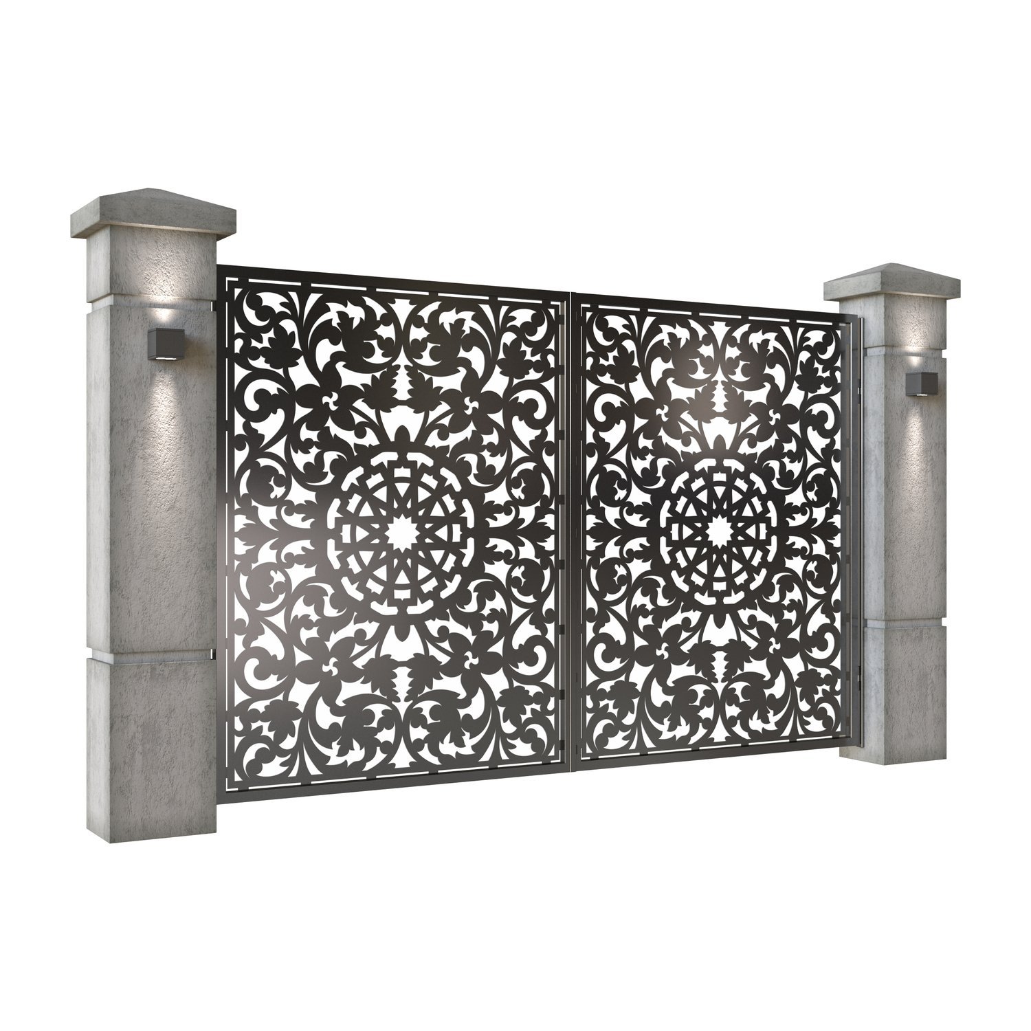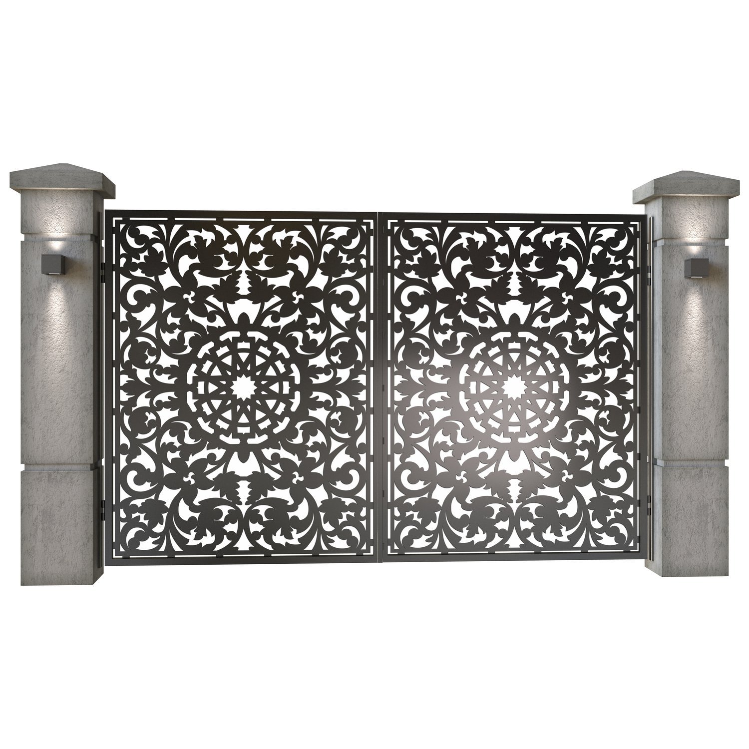 Panou de gard metalic din tabla debitata CNC, model Oman. Rama panoului este realizata din teava rectangulara tip lis (lisa), 40×30 mm, avand grosimea de 2 mm.