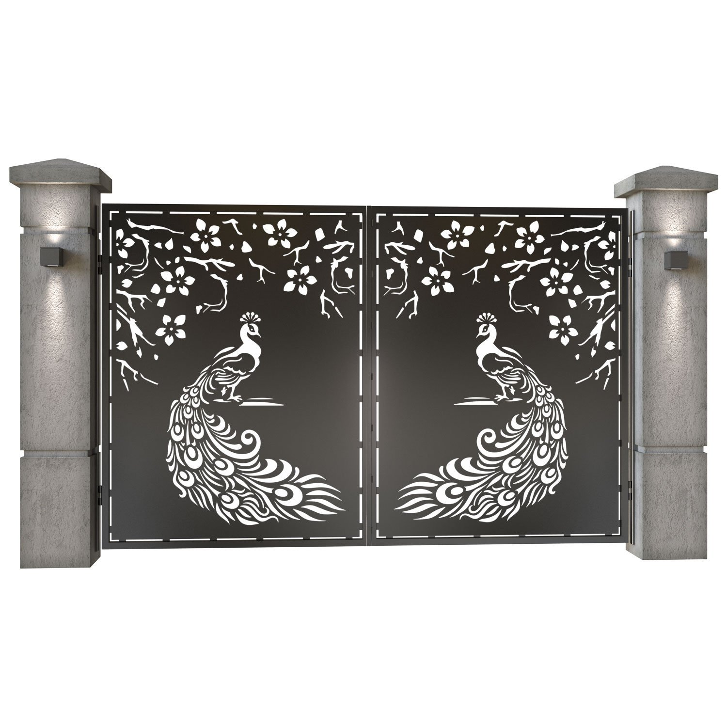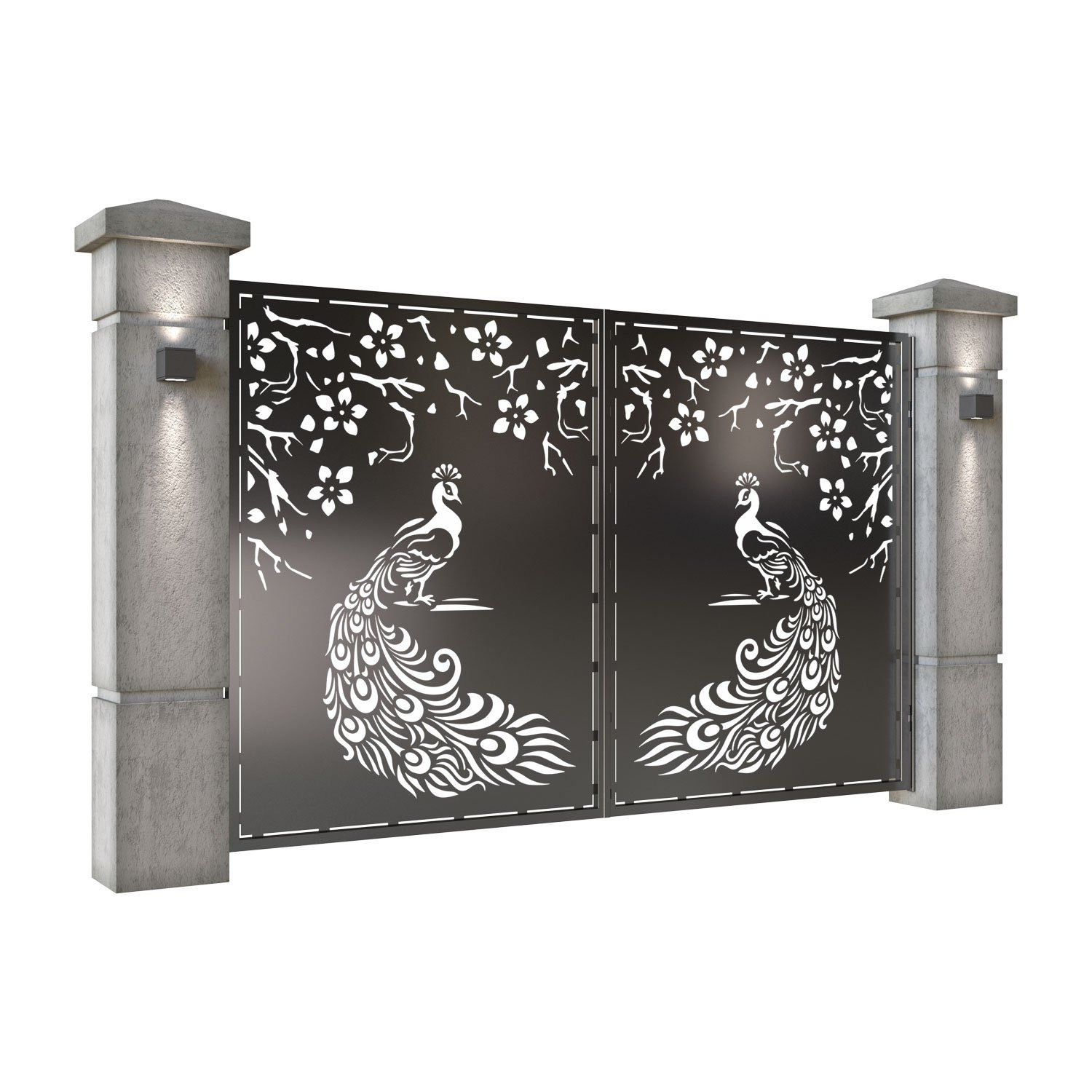 Panou de gard metalic din tabla debitata CNC, model Pauni. Rama panoului este realizata din teava rectangulara tip lis (lisa), 40×30 mm, avand grosimea de 2 mm.