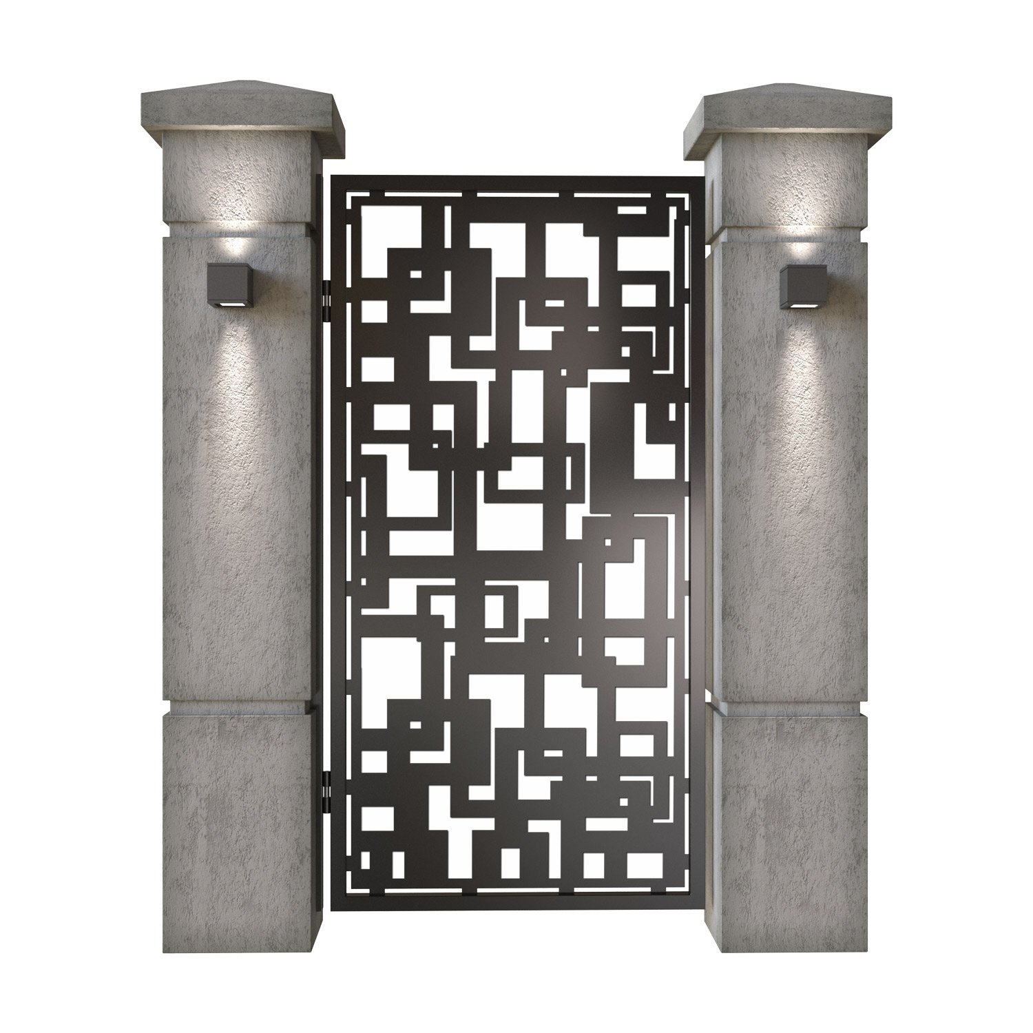 Panou de gard metalic din tabla debitata CNC, model Abstract. Rama panoului este realizata din teava rectangulara tip lis (lisa), 40×30 mm, avand grosimea de 2 mm.